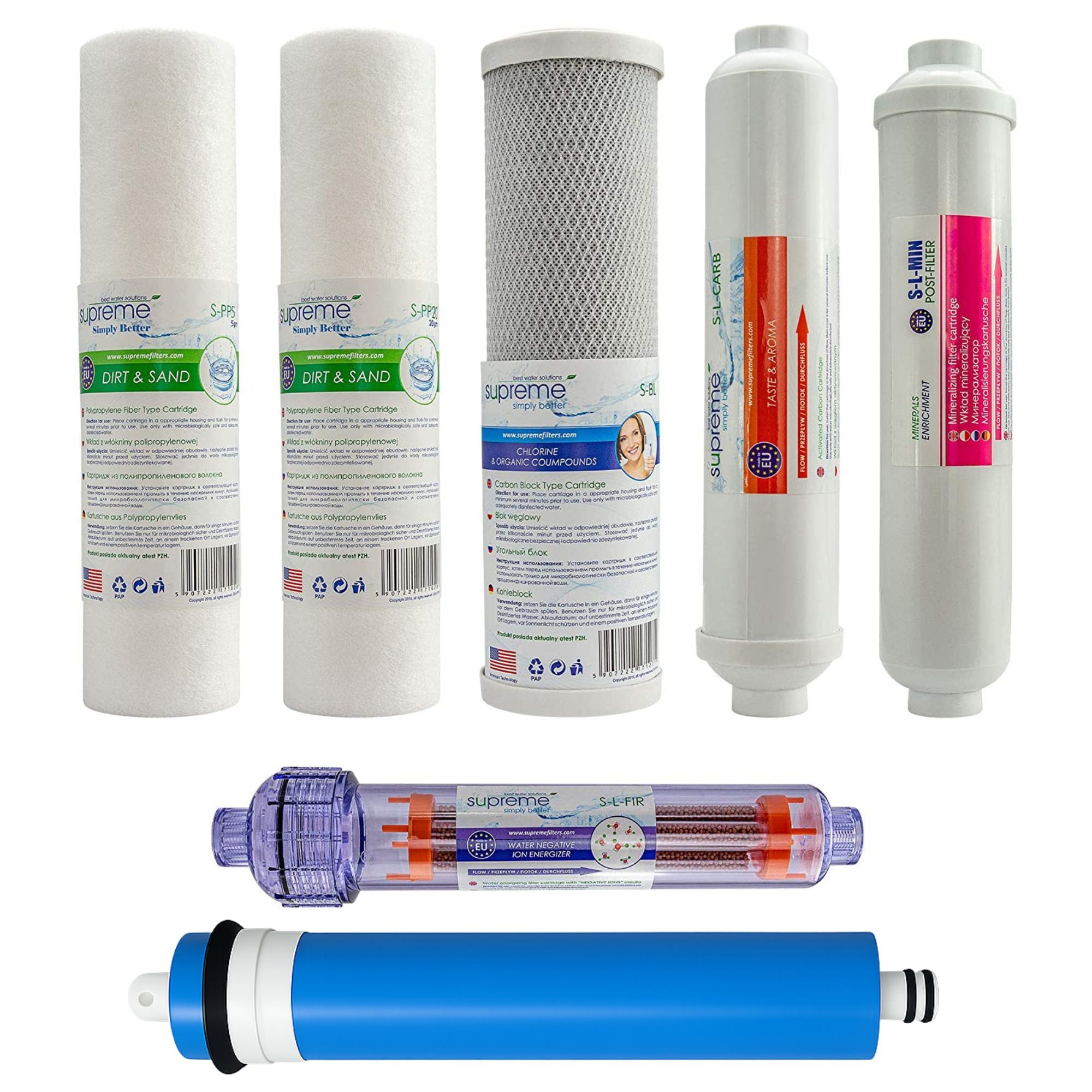 Set Ersatzfilter + Membrane für Supreme - RO7 Umkehrosmoseanlage Wasserfilter